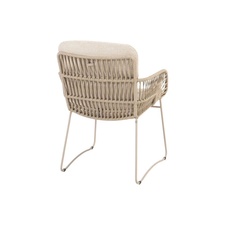 De 4 Seasons Murcia tuinstoel heeft een solide frame van Roestvast Staal (RVS) en is voorzien van een matte coating voor extra bescherming tegen krassen en stoten. Hierdoor kan de stoel vrijwel zonder enig onderhoud de weersinvloeden trotseren. Het zitgedeelte van de Murcia tuinstoel is vervaardigd uit Rope. Dit materiaal heeft een minimalitische uitstraling en voelt zacht aan, toch is het bepaald geen touw. Rope is namelijk opgebouwd uit een polypropyleen basis met een kunststof kern. Het omhulsel wordt gemaakt van een acryl stof en is zeer waterafstotend, Uv-bestendig en kleurvast. Perfect materiaal om te verwerken in een tuinstoel. Er wordt dan ook maar liefst 5 jaar garantie gegeven op dit materiaal. Met de kussens van de 4 Seasons Murcia dining tuinstoel ben je verzekerd van optimaal zitcomfort. De waterafstotende kussens zijn voorzien van een afneembare hoes welke gewassen kan worden op 30 graden. Mocht je de hoes willen wassen dan adviseren wij om dit te doen zonder wasmiddel.