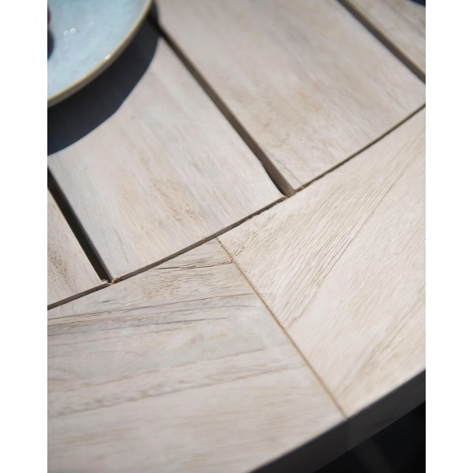 De Louvre tuintafel heeft een robuuste uitstraling door de combinatie van teakhout met een aluminium tafelpoot. Altijd al op zoek geweest naar een mooie ronde tafel? Deze tafel is een echte eyecatcher en kan zowel binnen als buiten gebruikt worden. De tafel is ook gemakkelijk te combineren met verschillende materiaal tuinstoelen. De louvre tuintafel heeft een tafelblad van teakhout die bewerkt is met een mooie lichte wash. Daaronder zit een mooie aluminium tafelpoot die onderhoudsvrij is. Deze tafelpoot heeft een handig design van een driepoot. Zo zit de tafelpoot niemand in de weg. Het hout van deze tuintafel komt uit de kern van het sterkste teakhout. Wanneer teakhout niet behandeld wordt, zal dit gaan vergrijzen. Om dit te voorkomen zijn er verschillende onderhoudsmiddelen voor. Dan kan de originele kleur gewoon behouden blijven. De Louvre tafel kan goed gecombineerd worden met de Elba tuinstoelen van 4 Seasons Outdoor. Deze stoelen hebben namelijk een frame met dezelfde kleur als het onderstel van de Louvre tafel. De tafel heeft een doorsnede van 160 cm met een hoogte van 78,5 cm.