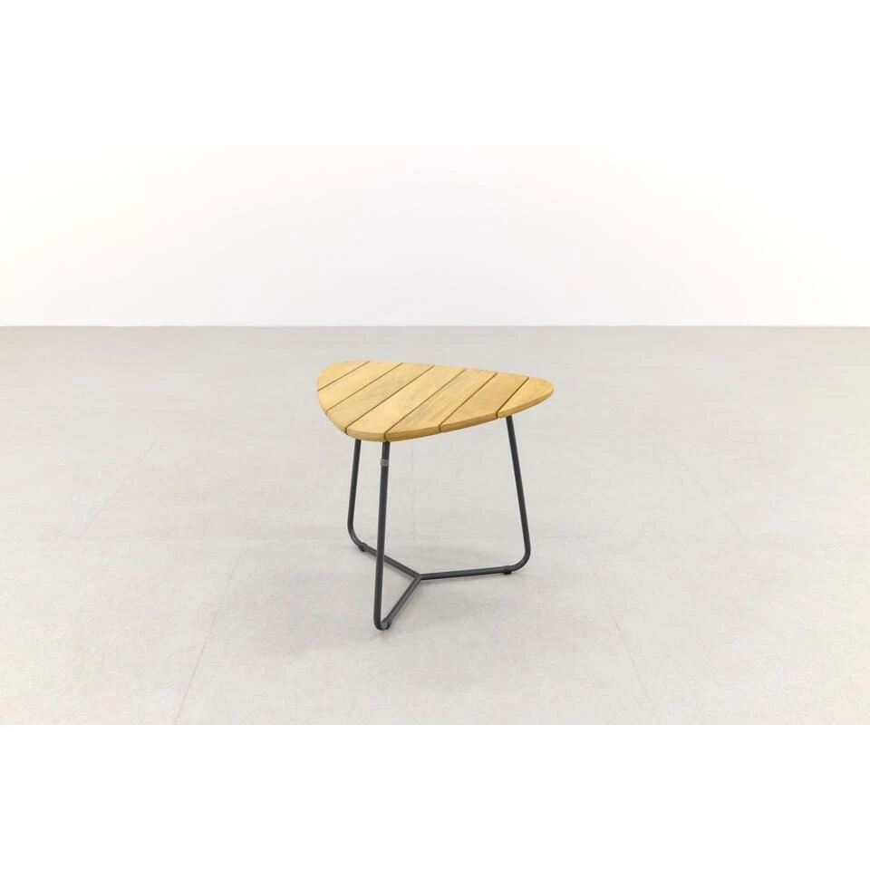 Een variatie op de voorgaande ‘Axel’ bijzettafel serie. Deze populaire serie is in een nieuw jasje gestoken. Dit keer met natuurlijk teakhout in plaats van teakhout met een greywash. Op deze manier is deze tafel met bijna alle loungesets te combineren. Het frame is van RVS, een materiaal met een lange levensduur. Ter bescherming is het roestvast staal gecoat met een matte antraciet kleur. Het teakhouten tafelblad zorgt voor een warme uitstraling. Houd er rekening mee dat natuurlijk teakhout nog zal gaan werken door middel van de weersinvloeden. Hierdoor zal het hout grijzer worden en komen er kleine barstjes en scheurtjes in. Dit maakt je tafel nog stoerder en heeft geen negatief effect op de kwaliteit van de tafel!