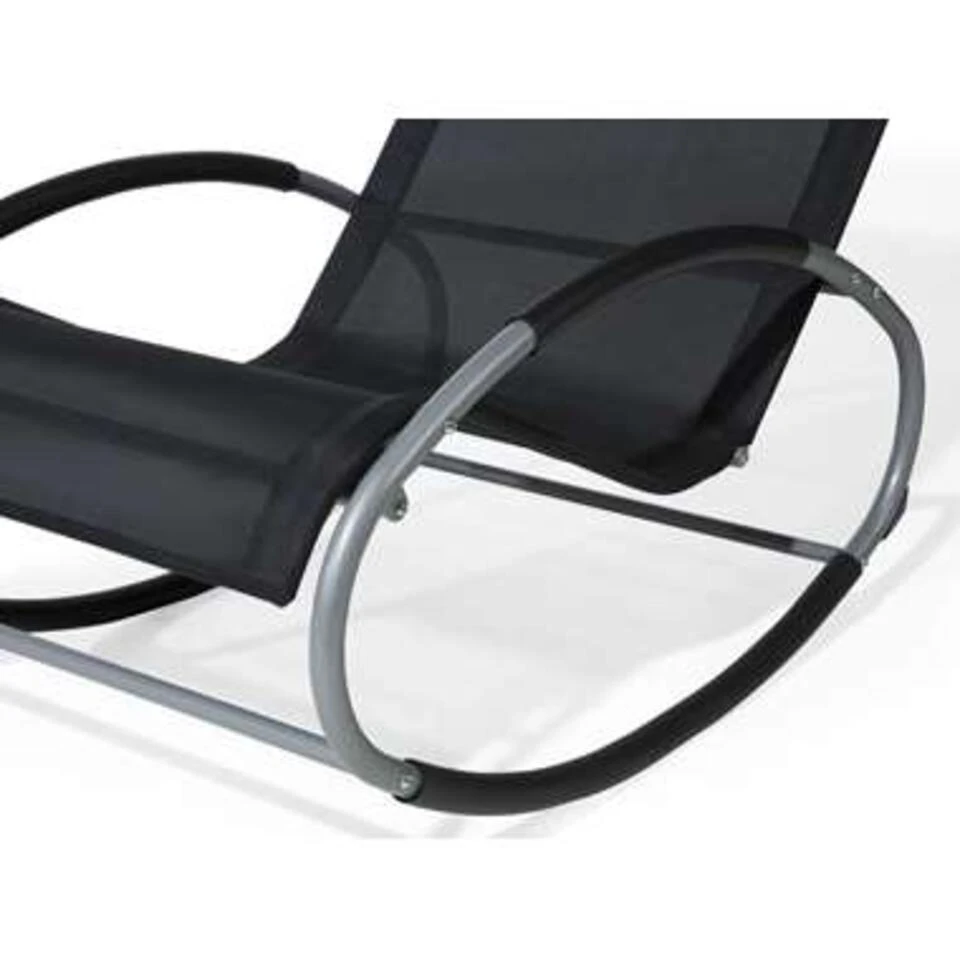 Trendy schommelstoel voor de tuin in zwart. De eigentijdse stijl van dit ligbed wordt aangevuld door het ergonomische ontwerp. Hoepels van gepoedercoat staal geven het meubel een dynamisch gevoel en maken een zachte schommelbeweging mogelijk. Met antislipbekleding op het onderstel en de armleuningen en een afneembare hoofdsteun biedt deze stoel je ultiem comfort.