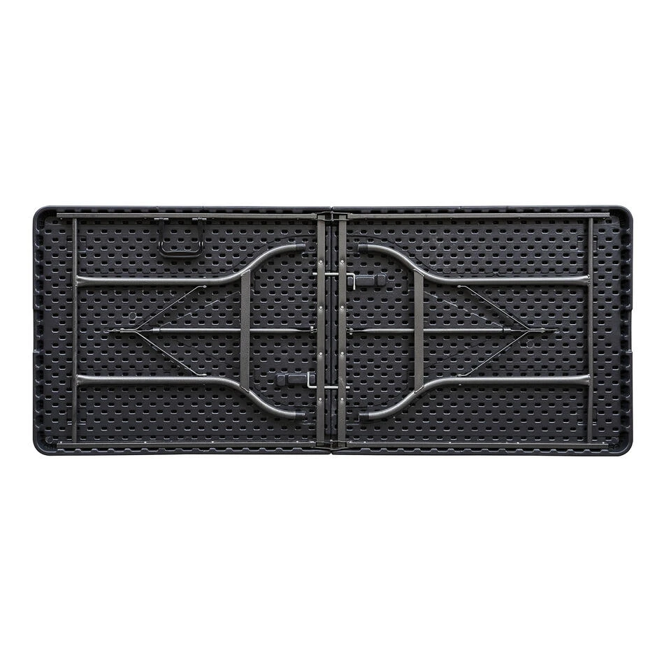 Inklapbare tafel met wicker look. Op zoek naar een vouwtafel die je zowel binnen als buiten kunt gebruiken? Deze picknicktafel zwart is ideaal voor buiten, op de camping of voor het creĂŤren van extra (zit)ruimte op feestjes. De tafel is 180cm lang, 74cm breed en 72cm hoog. Opgeklapt is de tafel slechts 90x74x9cm en dus heel compact op te bergen. Daarnaast heeft de plooitafel een handvat zodat je hem gemakkelijk mee kunt nemen.