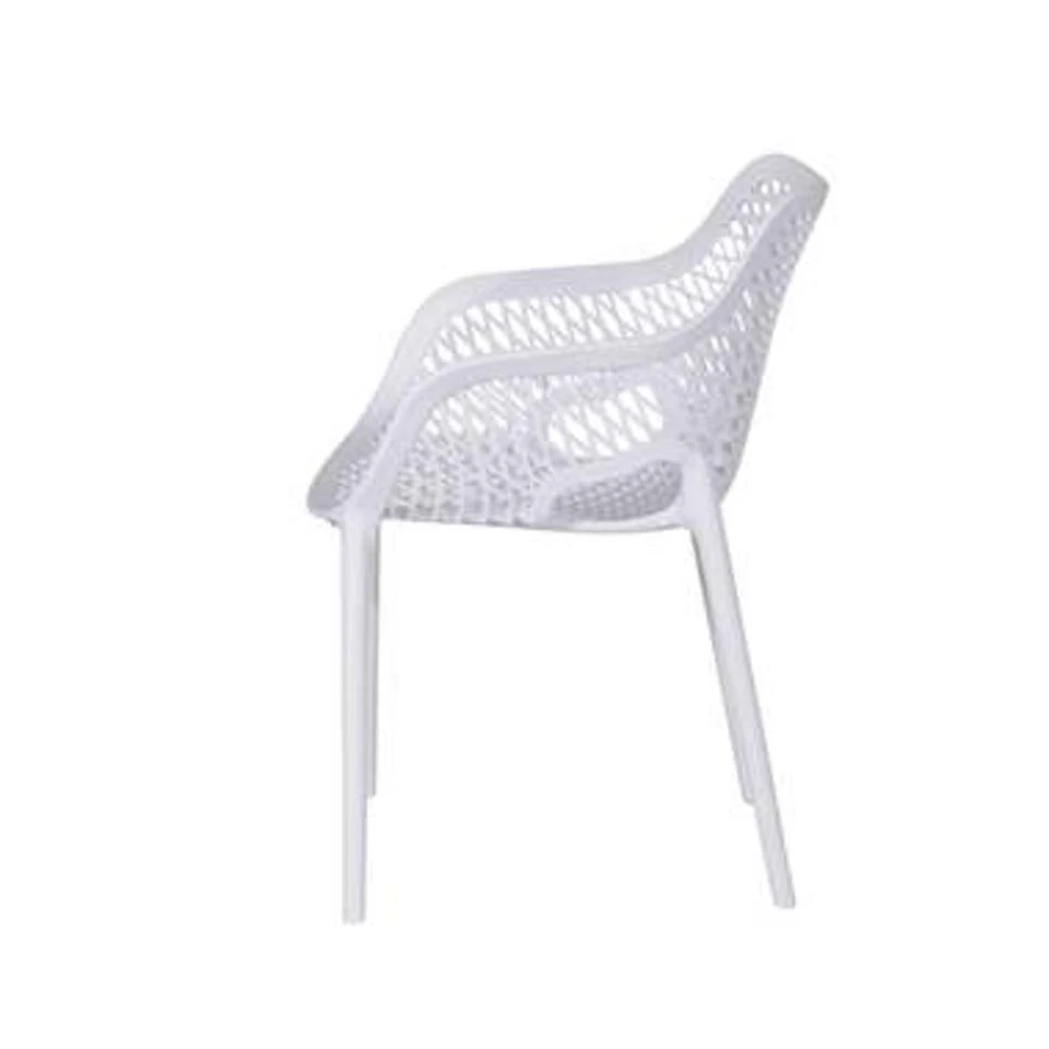 Op zoek naar een eyecatcher voor in de tuin of in huis? Dan is de 4-delige set Air XL design tuinstoelen in de kleur wit zeker een goede keuze. Deze hoogwaardige kunststof tuinstoelen van kwaliteitsmerk Garden Impressions zijn gemaakt van polypropyleen versterkt met glasvezels. Deze stoelen zijn perfect te combineren met de robuuste tafel van bijvoorbeeld teakhout of natuursteen. De kunststof tuinstoelen zijn vervaardigd uit een onderhoudsvrije hoogwaardig kunststof. De tuinstoelen zijn stapelbaar, wat het gemakkelijk maakt om op te bergen. De tuinstoelen zijn voorzien van een hoog UV-filter waardoor de kleur wordt behouden. De collectie Air XL kunststof tuinstoelen zijn onderhoudsvrij en makkelijk schoon te maken met een kunststof reiniger en een zachte (pluisvrije) doek. In het ontwerp is rekening gehouden met regenwater, want door de subtiele gaatjes in de stoel loopt het regenwater meteen weg. De set van 4 Air XL tuinstoelen wit hoef je niet te monteren, zo kan het genieten direct beginnen! De stoelen zijn voorzien van pootdopjes waardoor de onderkant van de poten niet zullen beschadigen. Technische specificaties: Afmeting dining fauteuil: B 56,5 x D 60 x H 81 cm, hoogwaardig polypropyleen met glasvezel, verkrijgbaar in twee kleuren.