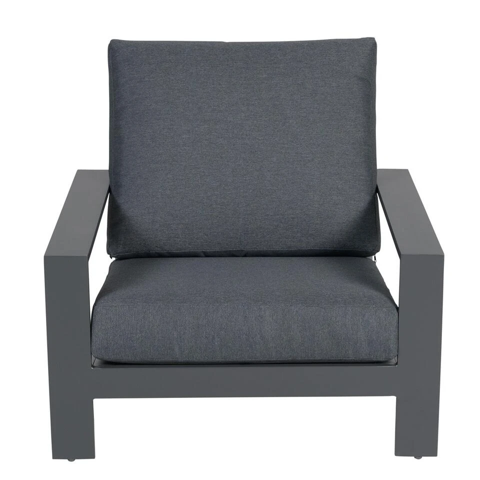 De lounge fauteuil is compleet gemaakt van aluminium en heeft een stevige zwarte poedercoating. Dit aluminium frame is onderhoudsvrij en weerbestendig. De meegeleverde dikke polyester kussens zijn voorzien van een rits. De hoes is afneembaar en kan eenvoudig met de hand gewassen worden. De kussens zijn niet waterbestendig, maar wel waterafstotend. Stel dat er drinken op de lounge fauteuil gemorst wordt, dan kan dit er gemakkelijk afgeveegd worden.