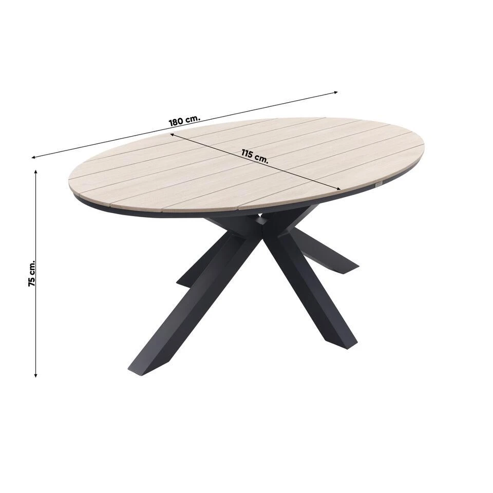 Eigenschappen ovale tuintafel 180 Edison