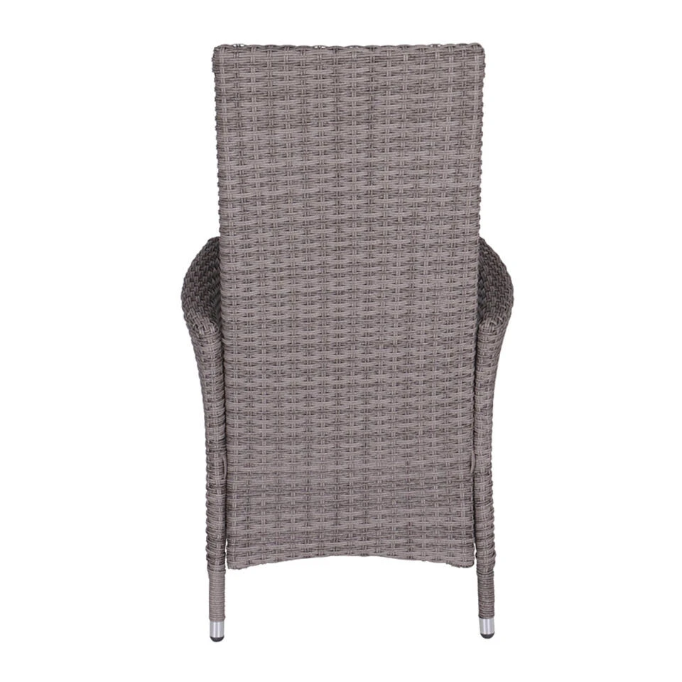 Het zitkussen is bovendien voorzien van een rits, waardoor het hoesje met de hand gewassen kan worden. Het kussen is niet 100% waterdicht, maar is wel voorzien van een waterafstotende coating. Dit is vooral erg praktisch als er bijvoorbeeld op het kussen wordt gemorst met drinken. Je veegt het vocht er namelijk gemakkelijk weer af. Na gebruik kan het kussen opgeborgen worden in de schuur of in een mooie kussenbox. De rugleuning van deze stoel kan gemakkelijk door middel van de gasveer in iedere gewenste stand naar achteren geplaatst worden. Hierdoor kun je heerlijk dineren in de stoel, maar ook achterover liggend genieten van de zon. Deze verstelbare wicker tuinstoel is voorzien van een gasveer van een hoogwaardige kwaliteit. Voor behoud van de gasveer is er gebruik gemaakt van een koker met kunststof sluitingsranden om de gasveer. Dit voorkomt dat er zomaar vocht bij de gasveer kan komen. Uiteraard kan door de jaren heen er wel wat vocht bij komen. Om dit zoveel mogelijk te beperking wordt er aangeraden om de stoelen bij nat of vochtig weer af te dekken met een passende beschermhoes. De afmetingen van deze stoel zijn: B 62 x D 59 x H 110 cm.