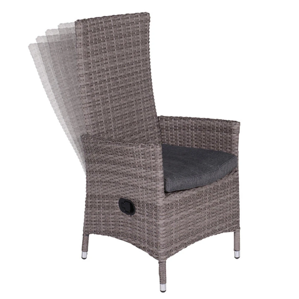 De Nice verstelbare tuinstoel is vervaardigd uit een onderhoudsvrij aluminium frame. Daaromheen is, met de hand, weerbestendig 2-half wicker vlechtwerkdraad in de kleur organic grey gevlochten. Het wicker is gemaakt van een stevige kunststof waardoor de set zeer duurzaam is. Deze stoel wordt compleet geleverd met een polyester zitkussen van hoogwaardige kwaliteit.
