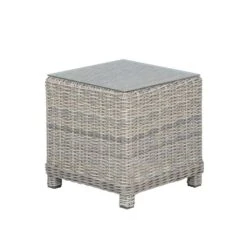 Ben je op zoek naar een mooie bijzettafel van wicker voor bij jouw Santa Rosa relaxfauteuils? Dan is deze vintage willow kleurige bijzettafel gemaakt van wicker echt iets voor jou. Dit bijzettafeltje heeft een aluminium binnenframe met daar omheen 6mm half rond wicker vlechtwerkdraad. Dit bijzettafeltje met heldere glasplaat past mooi bij de verstelbare relax fauteuil en voetenbank in hetzelfde vlechtwerk. Deze mooie bijzettafel heeft een afmeting van 45 x 45 x H46 cm. Een uitgebreide collectie bijzettafels vind je binnen de categorie tuinmeubelen. Tuinmeubelen van verschillende mooie merken.