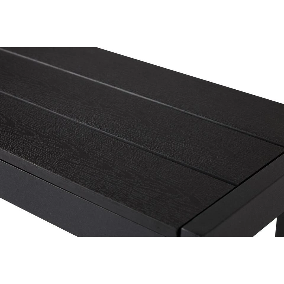 De Dylan tuinbank is gemaakt van lichtgewicht aluminium en heeft een zitting van polywood. Dit kunststof is ijzersterk en ziet eruit als hout, wat het bankje een natuurlijke uitstraling geeft. De zitting bestaat uit drie latten over de lengte, die elk 9,5 cm breed zijn. Deze tuinbank biedt extra zitplaatsen aan de tuintafel en neemt minder ruimte in dan stoelen rond de tafel. Ideaal dus als je een kleiner terras of balkon hebt. Ook leuk om als losse tuinbank op een plekje in de tuin of tegen het huis aan te zetten.