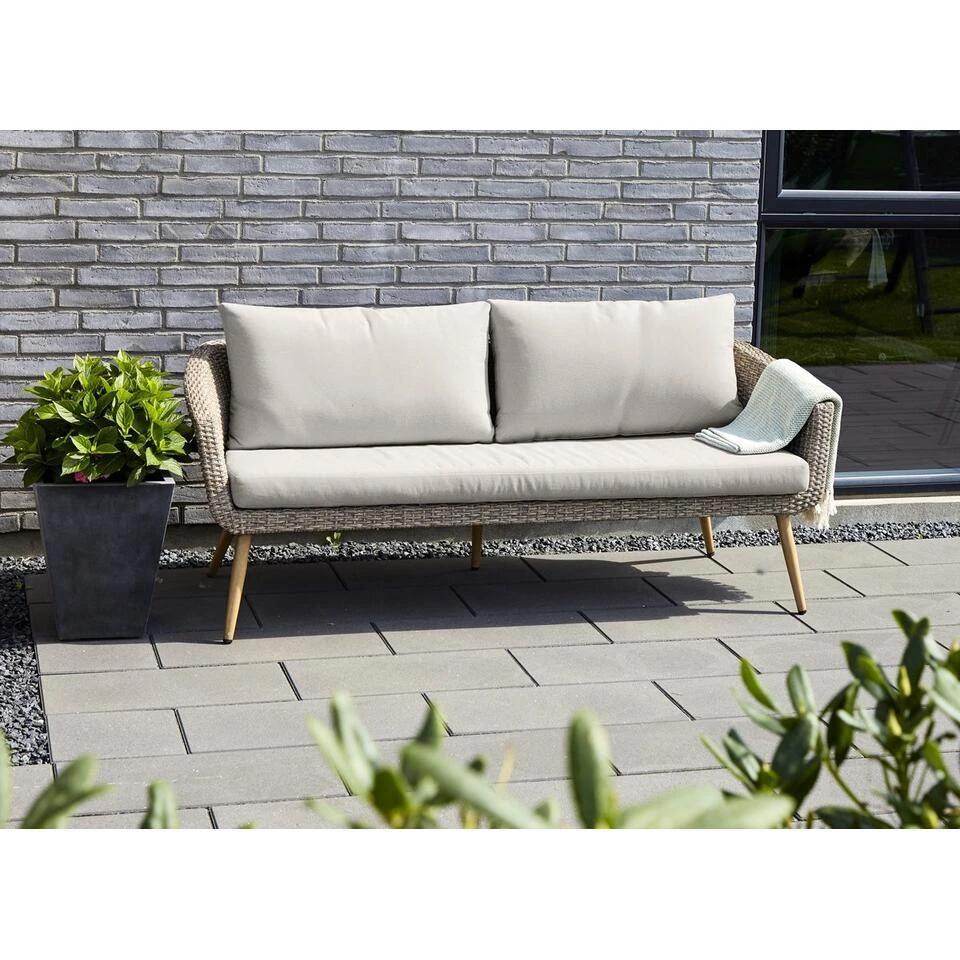De buitenbank kun je gedurende het jaar buiten laten, maar wel met de tip om de zitkussens naar binnen te doen in de winter. Zo kan je altijd even snel of langdurig genieten van deze trendy bank. De bank is ontworpen met een geweven polyrattan zitting en is afgewerkt met aluminium poten inclusief beschermdopjes. De zachte zit- en rug kussens hebben een comfortabele dikte van 9 cm. Verder heeft het zitgedeelte een afmeting van B160 x D57 cm. Zie jij jezelf al zitten op deze leuke tuinbank?