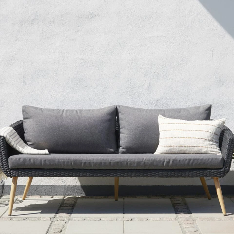 De buitenbank kun je gedurende het jaar buiten laten, maar wel met de tip om de zitkussens naar binnen te doen in de winter. Zo kan je altijd even snel of langdurig genieten van deze trendy bank. De bank is ontworpen met een geweven polyrattan zitting en is afgewerkt met aluminium poten inclusief beschermdopjes. De zachte zit- en rug kussens hebben een comfortabele dikte van 9 cm. Verder heeft het zitgedeelte een afmeting van B160 x D57 cm. Zie jij jezelf al zitten op deze leuke tuinbank?