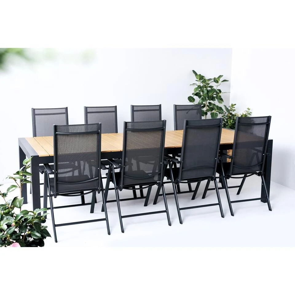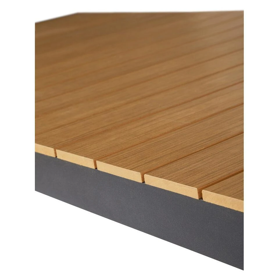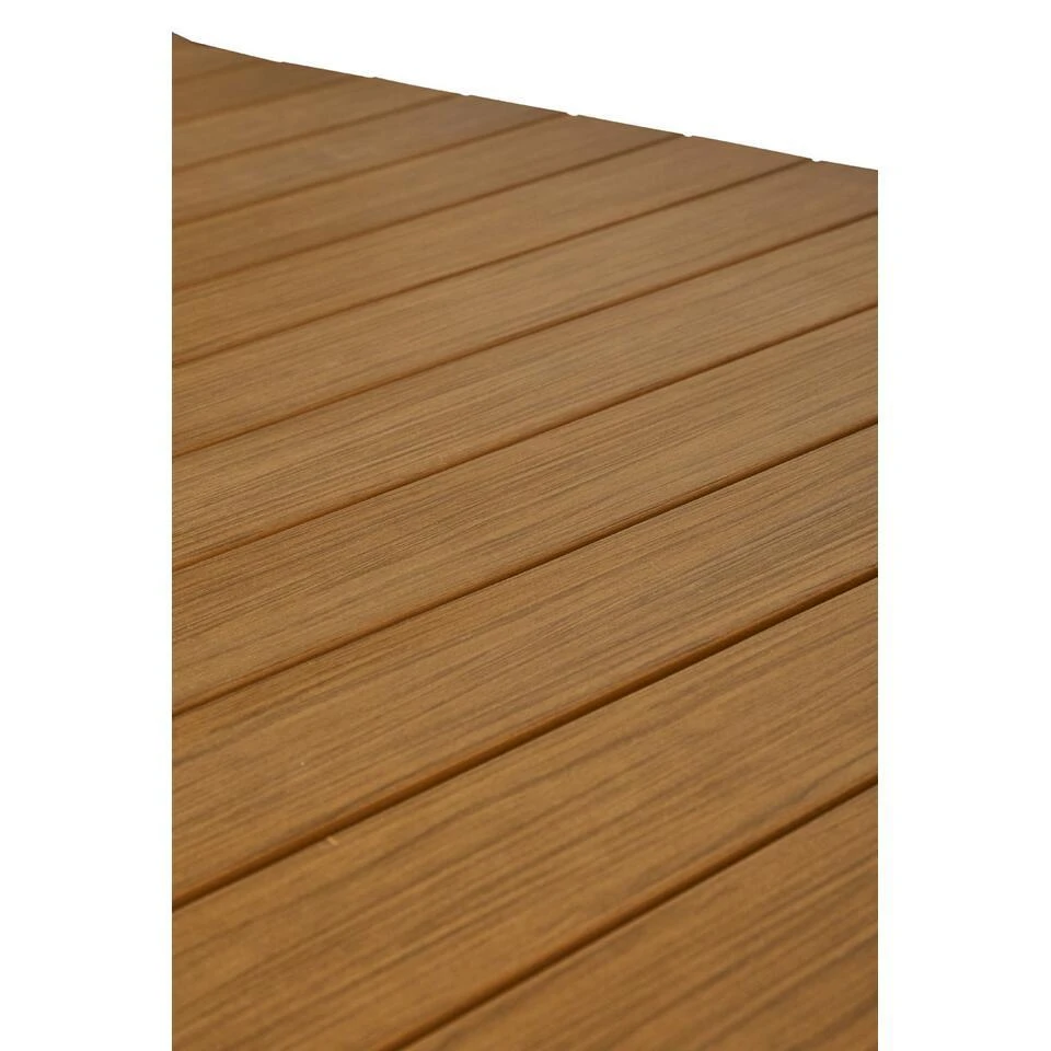 Schuif de tafel uit als je mensen over de vloer hebt, en klap de tafel weer in zodra je iets meer ruimte op het terras wil. De Stef tuintafel heeft een frame van zwart gepoedercoat aluminium en een tafelblad gemaakt van polywood latjes. Polywood is een duurzame kunststof maar heeft de uitstraling van hout, waardoor je een mooie houtlook tafel hebt. De onderkant van het tafelblad is 67 centimeter hoog. Het verlengstuk van de tafel heeft een lengte van 69,5 centimeter waardoor de tafel tot 275 centimeter te verlengen is. Door het uitschuifbare frame kan het verlengstuk aan het uiteinde van de tafel worden bevestigd. Let op: laat glazen niet te lang in de zon staan op een polywood tafel. Hierdoor kan een vergrootglaseffect optreden waardoor er smeltplekken ontstaan op het tafelblad. Ook hete voorwerpen zoals pannen kunnen niet direct op het tafelblad worden geplaatst.