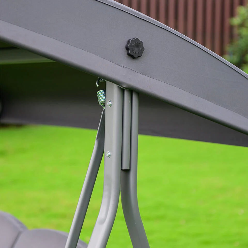 Trakteer jezelf op pure ontspanning met onze DESCANSO Hollywood-schommel en maak van je tuin, balkon of terras het perfecte toevluchtsoord. De ruime schommelbank biedt comfortabel plaats aan maximaal drie personen en verandert elke buitenruimte in een oase van welzijn. Laat je zachtjes wiegen en geniet van ontspannende uren in de buitenlucht. De DESCANSO maakt indruk met zijn hoogwaardige afwerking en duurzame materialen. Het gepoedercoate frame is corrosiebestendig, terwijl de robuuste polyester overkapping betrouwbare bescherming biedt tegen de zon en lichte regen. De verstelbare zonnekap blijft stabiel, zelfs in winderige omstandigheden, terwijl de geïntegreerde bekerhouders en de zachte 8 cm vulling zorgen voor maximaal comfort. De UV-bestendige zonwering maakt de uitrusting compleet en maakt lange sessies aangenaam.