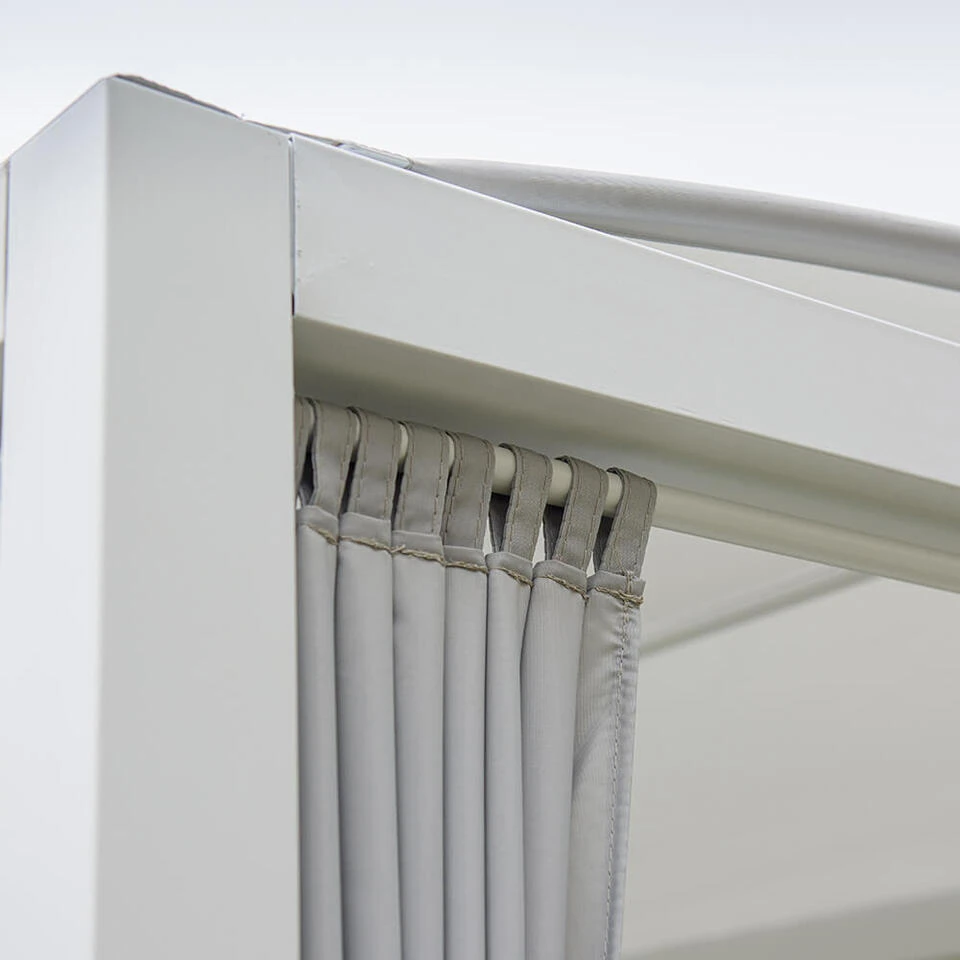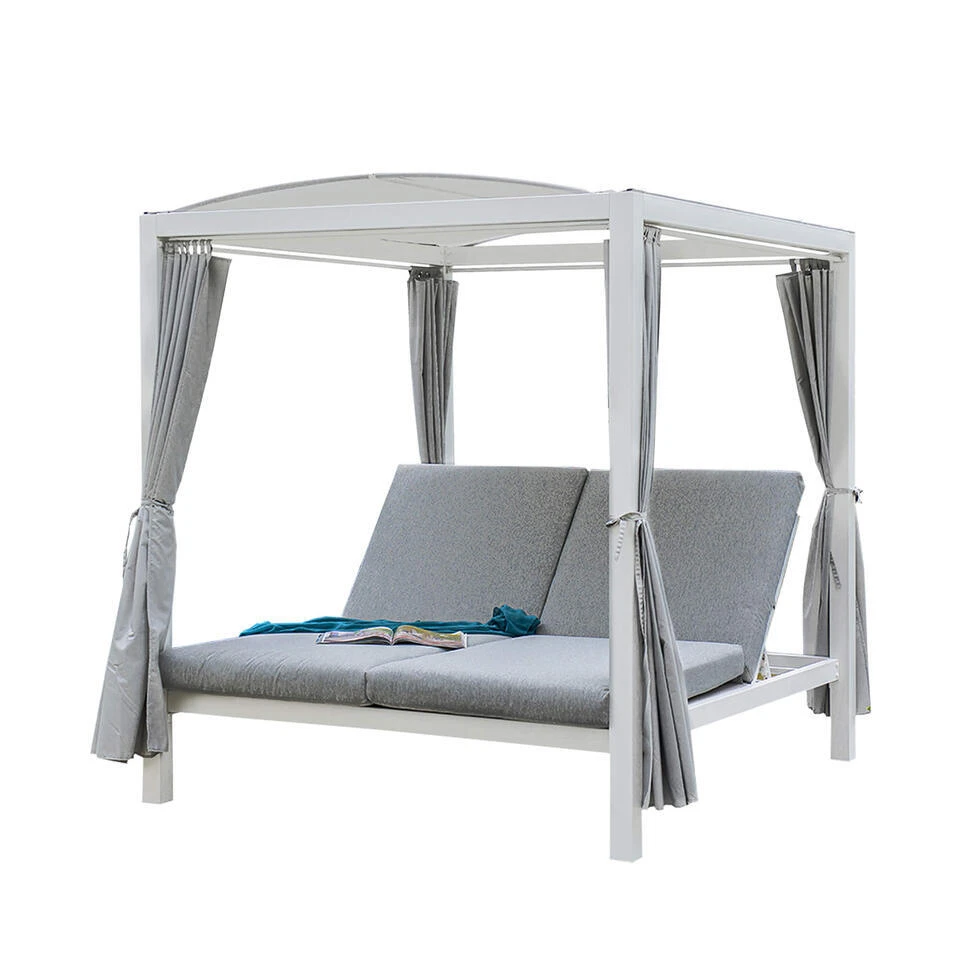 Het ligbed maakt indruk met zijn innovatie en moderniteit. Het elegante ontwerp van het ligbed creëert een buitengewoon hoogtepunt in de buitenruimte. De rugleuning kan naar wens in 3 verschillende standen worden gezet en kan dankzij het hoge comfort aan uw wensen worden aangepast. De 4 zijgordijnen bieden bescherming tegen wind en zonnestralen. De geweven zijwanden zijn gemaakt van 100% waterafstotend polyester. Dit betekent dat je zelfs bij een lichte zomerregen ongestoord kunt genieten van een gezellige sfeer.