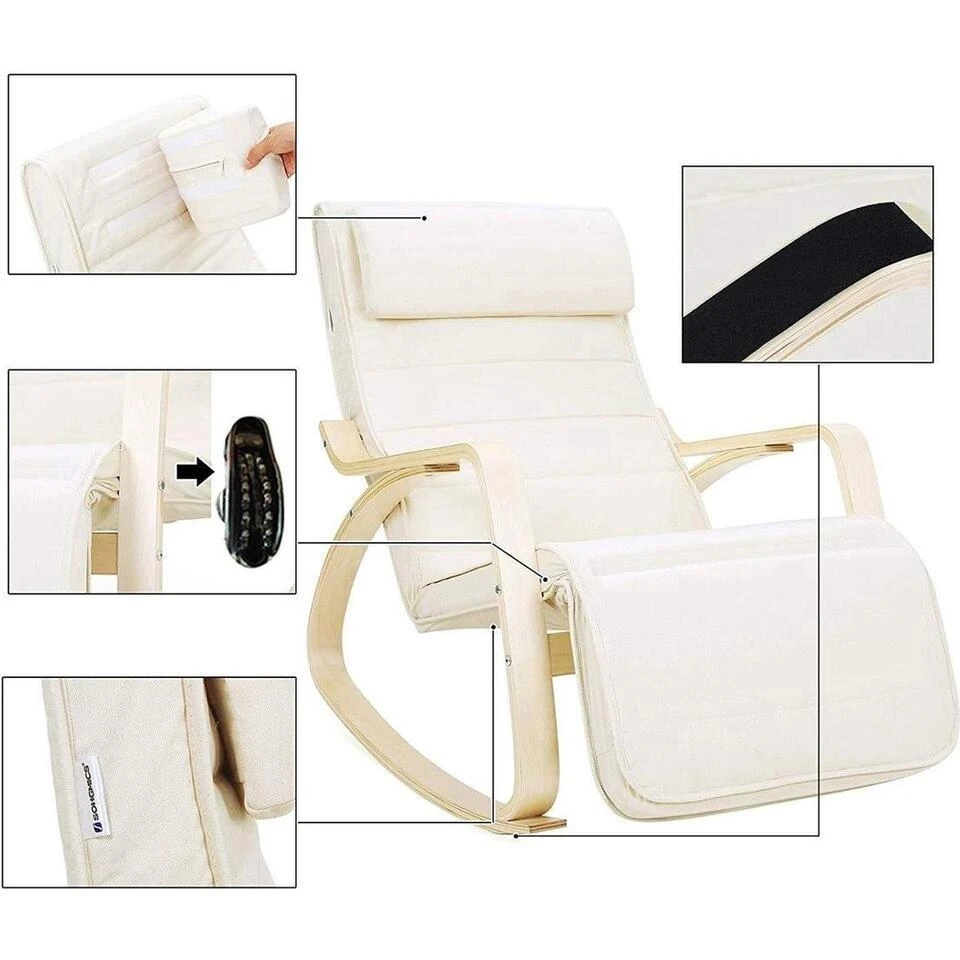 Naar boven of beneden? Je kunt de voetensteun van deze schommelstoel naar behoefte op 5 verschillende hoogtes verstellen. Of je nu een dutje op de schommelstoel wilt doen of boeken wilt lezen, je zitpositie zal altijd comfortabel zijn