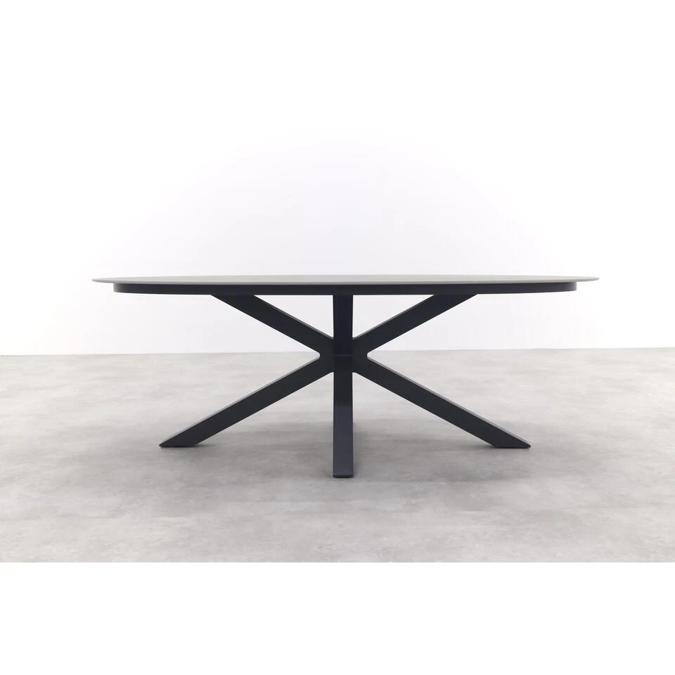 De Scotland ovale tuintafel marmerlook in het antraciet combineert een aluminium frame met een Centostone marmerlook tafelblad. Centostone is vergelijkbaar met keramiek. Alleen is Centostone compacter waardoor dus harder en steviger. Het materiaal is bestand tegen krassen en hitte, terwijl het ook geen vocht opneemt. Nu hoef je niet bang te zijn voor kringen en vlekken. Dit materiaal is niet alleen onderhoudsvriendelijk, maar bestaat grotendeels uit natuurlijke elementen, wat het een bewuste duurzame keuze maakt. Het witte mamerlook tafelblad wordt gecombineerd met een antraciet aluminium frame. Een aluminium kruispoot frame heeft verschillende voordelen zoals: licht van gewicht, onderhoudsvriendelijk, weerbestendig en roestbestendig, tijdloos en lange levensduur.