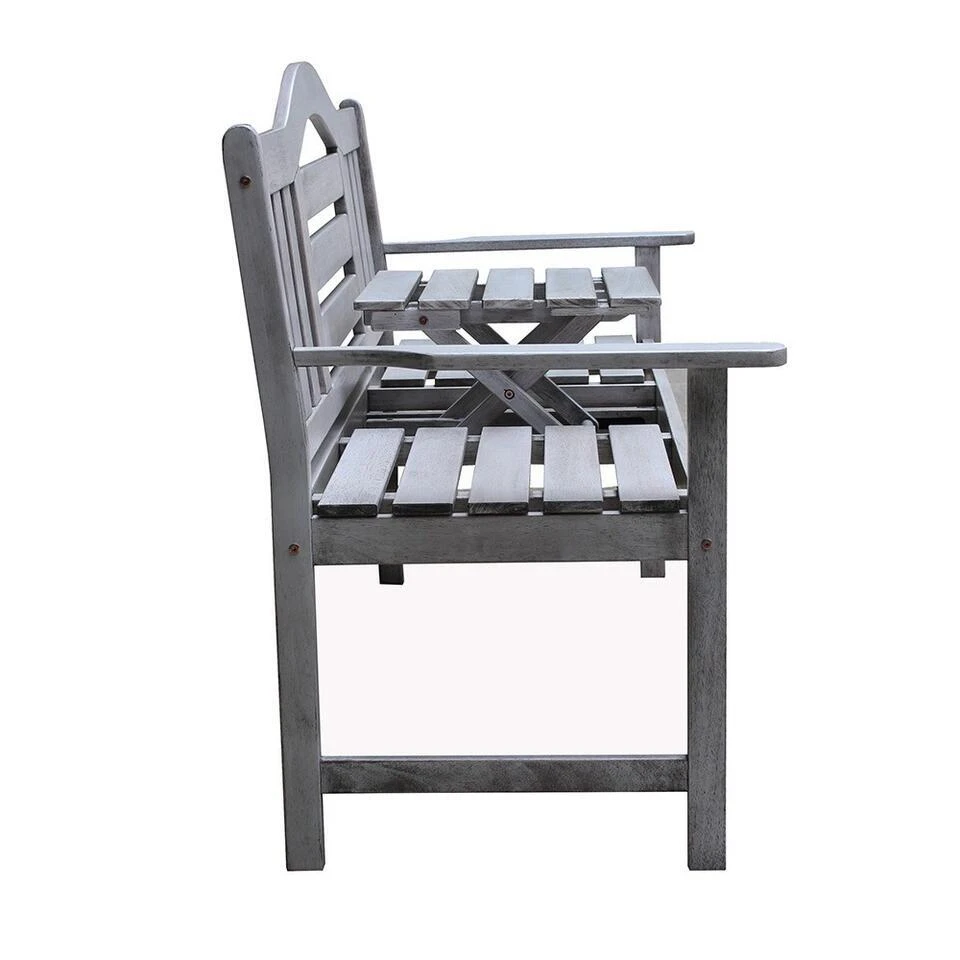 Zit jij graag buiten? Dan is de grijze tuinbank een ideale uitkomst! De middelste zitting van de buitenbank is uit te klappen. Hierdoor heb je in het midden van de bank een tafeltje. Wanneer de tafel is ingeklapt dan biedt de houten tuinbank ruimte aan drie personen.
