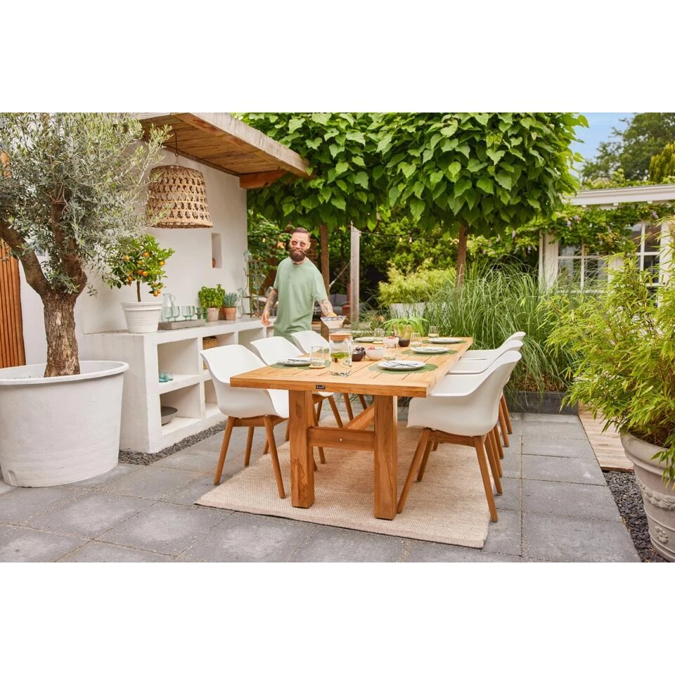 De kunststof kuip is voorgevormd, dit zorgt ervoor dat de stoel een ergonomisch zitcomfort biedt en daardoor dus erg lekker zit. De tijdloze witte kleur van deze stoel zorgt voor een moderne look in je tuin. Het frame van de Hartman Sophie Studio stoel is gemaakt van Teakhout. Voor dit materiaal is gekozen om de stoel een mooie natuurlijke look te geven. Gelukkig brengt dit materiaal weinig onderhoudt met zich mee. Het teak is een natuurproduct dat kan gaan werken als het buiten blijft staan. Dit is makkelijk mooi te houden door het hout gemiddeld één keer per jaar te behandelen met een teak cleaner en een teak protector.