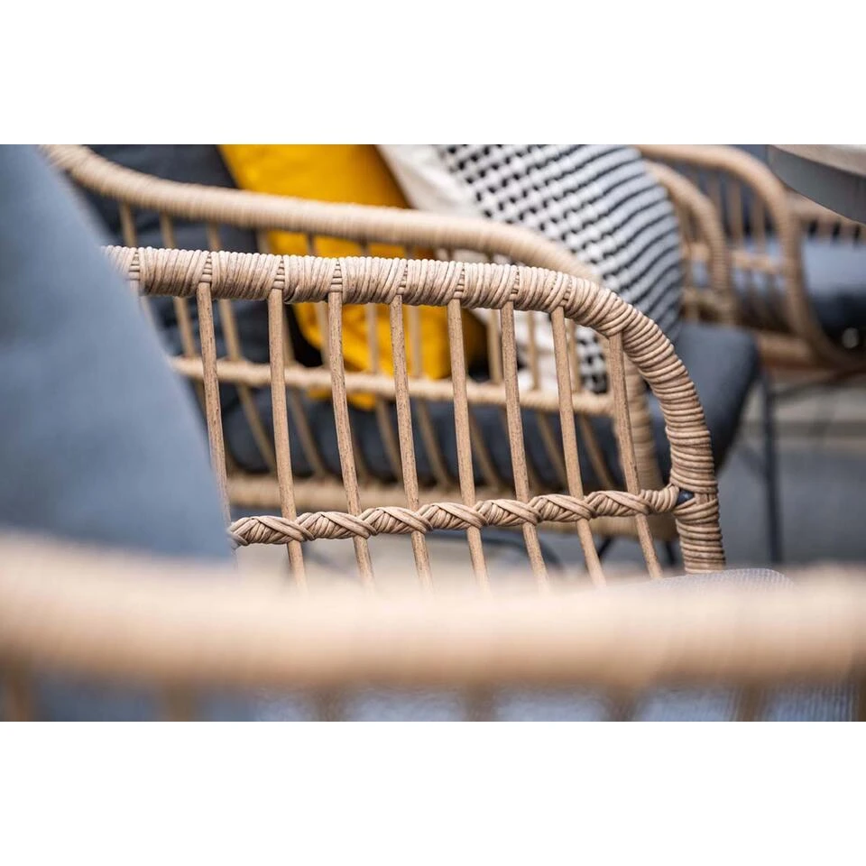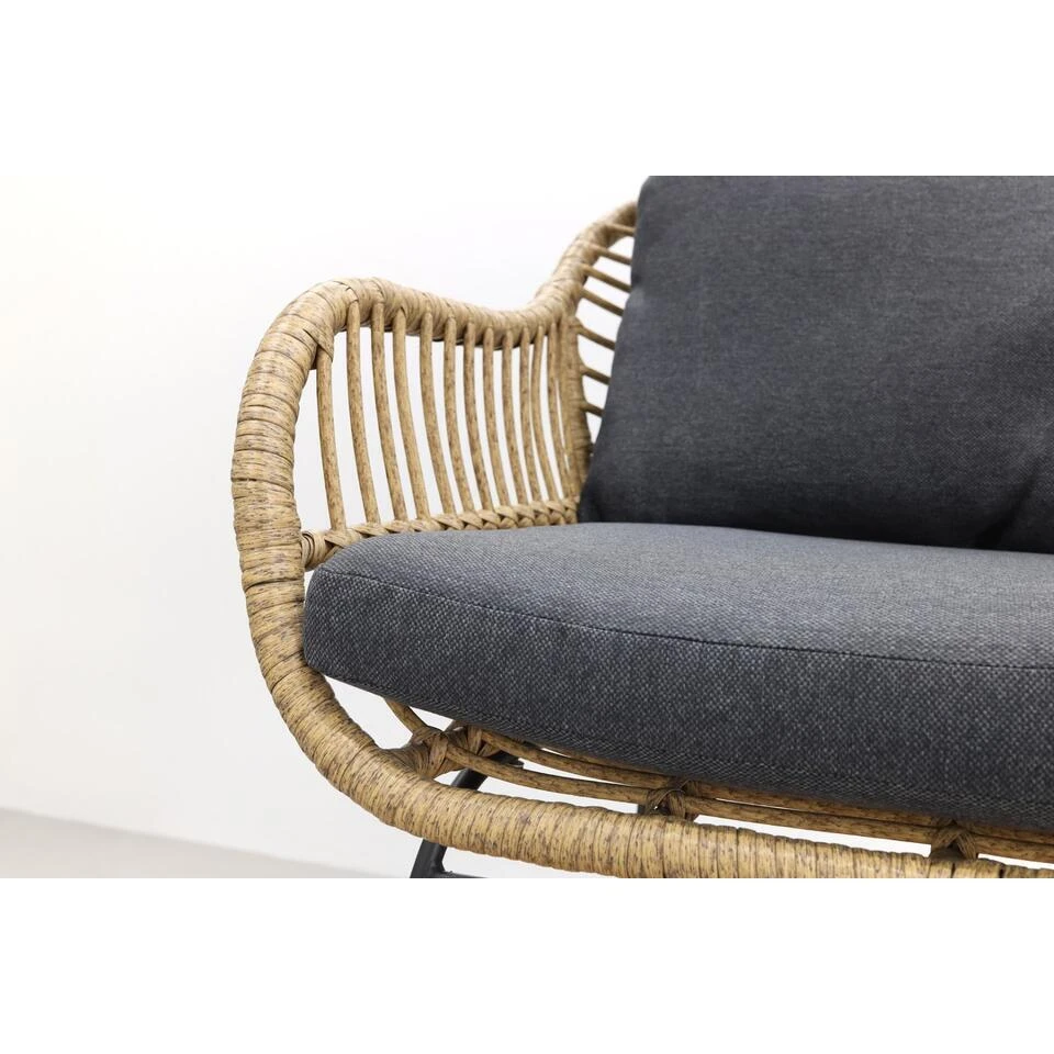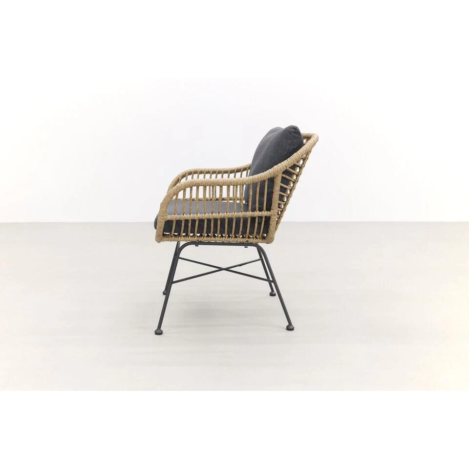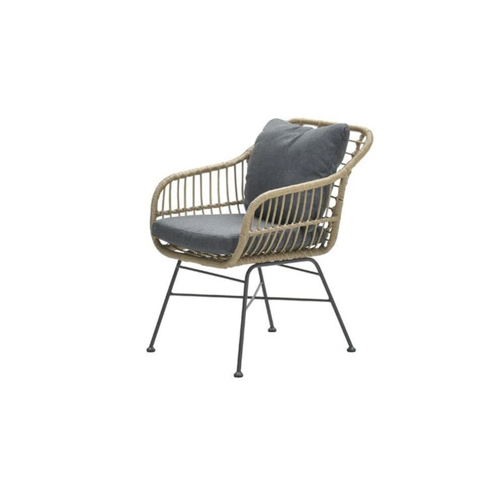 Het frame van de Margriet tuinstoel is gemaakt van staal. Een onderhoudsvriendelijk materiaal dat bestand is tegen de meeste weersinvloeden. Daarbij is het licht van gewicht en erg stevig! Om het frame is bruin wicker gevlochten. Dit geeft de unieke uitstraling aan deze stoel. De meegeleverde kussens hebben een antraciet kleur die helemaal van deze tijd is. De kussens hebben ook een waterafstotende coating. Dit betekend niet dat ze waterdicht zijn, wel kan je gemorst drinken er zo vanaf vegen!