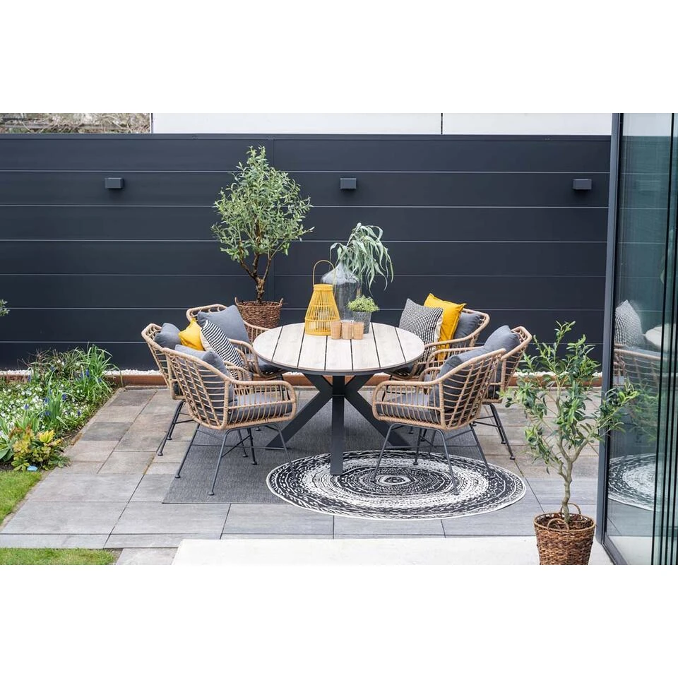 Dit is 4x de Margriet tuinstoel van het bekende tuinmeubelmerk Garden Impressions. De Margriet tuinstoel heeft een lichte retro look, maar is helemaal van deze tijd. Het gebruikte wicker -of rotan zoals sommige dit noemen- geeft die vintage look. Waarbij de rest van het design volledig trendy is! Een prachtige combinatie die perfect werkt voor deze tuinstoel van Garden Impressions. Het bruine wicker steekt mooi af tegen de antracietkleurige kussens. Een waar genot om in te zitten als naar te kijken!