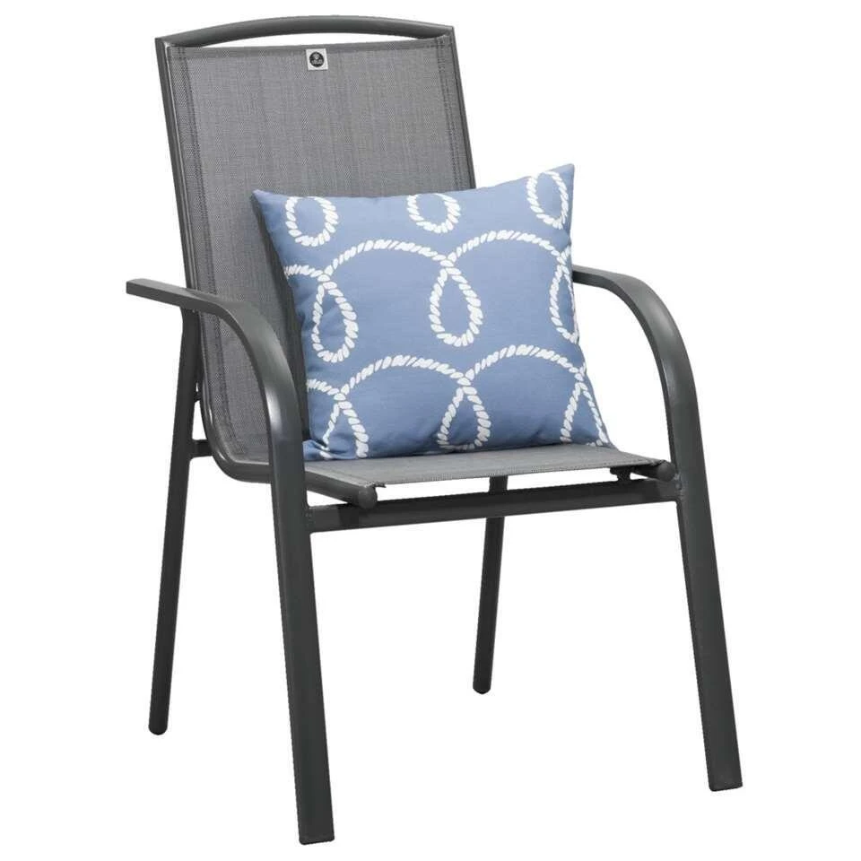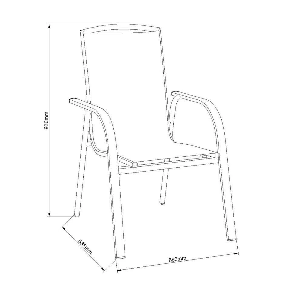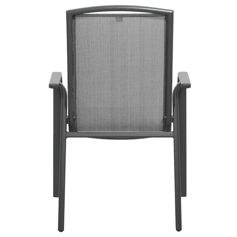 Stapelstoel Cannes is een comfortabele tuinstoel die bestaat uit een aluminium frame. De zitting is gemaakt van textileen, waardoor deze stoel meteen een fijn zitcomfort heeft. Deze tuinstoel is mat grijs van kleur, heeft een moderne vormgeving en is gemakkelijk op te bergen, zonder dat hij veel ruimte in beslag neemt.