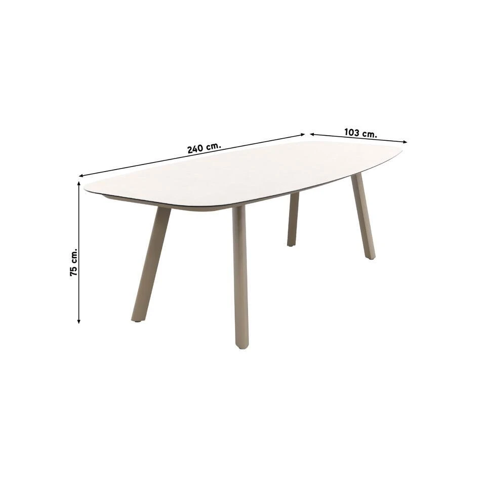 Zoek een stijlvolle, minimalistische en trendy tuintafel? De Manolo tuintafel van Taste voldoet aan al deze eisen! Met de Deens ovale vorm voldoet deze tuintafel helemaal aan de laatste tuintrends. Deens ovaal zit net tussen ovaal en rechtoekig in. Het tafelblad heeft wel iets weg van een betonlook, waarbij de poten van latte kleur hier prachtig op aansluiten. Een tafel die past in vele verschillende soorten tuinstijlen! Door de afmeting van 240×103 cm kan je met gemak met 6 personen aanschuiven! Zo kan je dat gezellige etentje wel plannen met deze tuintafel. Bestellen kan direct online! Liever deze tafel eerst even in het echt bekijken? Kom dan langs in onze showroom in Opheusden, Duiven of Apeldoorn. Je bent van harte welkom!