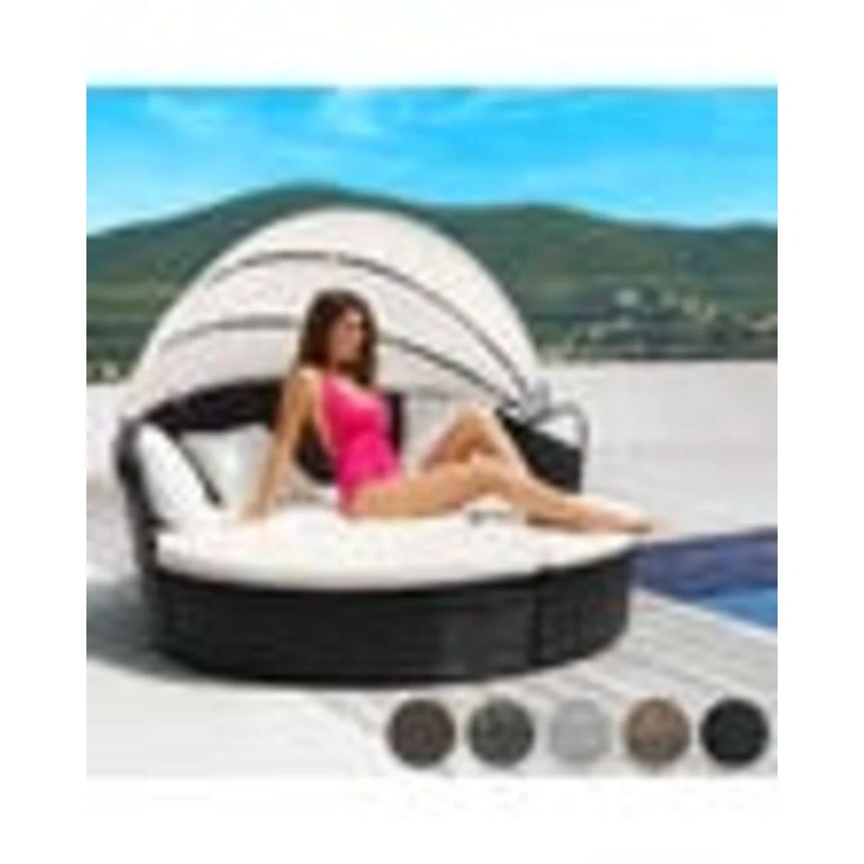 Hoogwaardig aluminium wicker zonne-eiland met opklapbaar zonnedak (door middel van twee gasveer-cilinders)