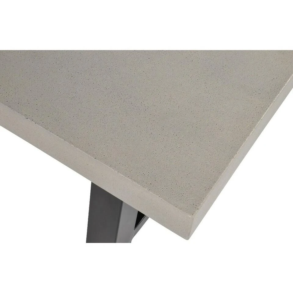 Tuintafel Toro is robuust, stoer en heeft een royale afmeting van 250x100x77 cm, zodat er genoeg plaats is voor familie en vrienden. Deze outdoor tafel is uitgerust met een stevig rechthoekig tafelblad, vervaardigd uit polystone met een gave betonlook. Polystone bestaat uit een mix van gemalen steen (o.a. graniet, marmer, soapstone) wat wordt vermengd met een vloeibare kunsthars. Polystone is ijzersterk, weersbestendig en zeer kleurecht. Om het stoere karakter van deze tafel extra te benadrukken, is hij voorzien van een metalen onderstel in een donkergrijze kleur. Dankzij het materiaalgebruik en de verschillende grijstinten, past deze tafel binnen veel verschillende woonstijlen. Combineer tuintafel Toro vervolgens eenvoudig met één van de vele tuinstoelen uit ons assortiment en maak uw terras, tuin of overkapping helemaal af!