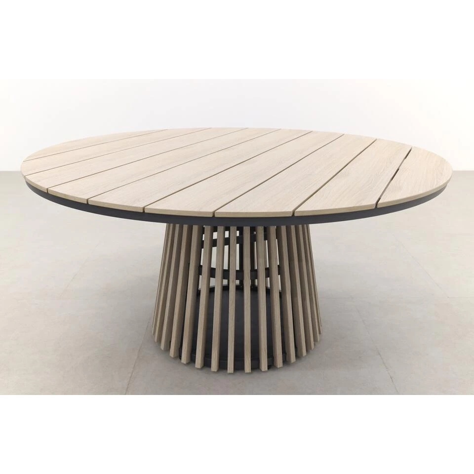 De Garden Impressions Trinxa tuintafel is vervaardigd uit hoogwaardige materialen. Het frame van de ronde tuintafel is gemaakt van aluminium en afgewerkt met een beschermende poedercoating. Aluminium heeft een lange levensduur en is super sterk. Het onderstel en tafelblad zijn bekleed met Imowood planken. Dit materiaal is een stevig kunststof welke afgewerkt is met een coating met een niet van echt te onderscheiden houtnerf. Hierdoor lijken de planken op écht teakhout. Het voordeel hiervan is dat je er geen onderhoud aan hebt. De planken kunnen niet gaan rotten en hoeven verder niet behandeld te worden met olie. Het tafelblad is eenvoudig af te nemen met een sopje en een zachte doek.