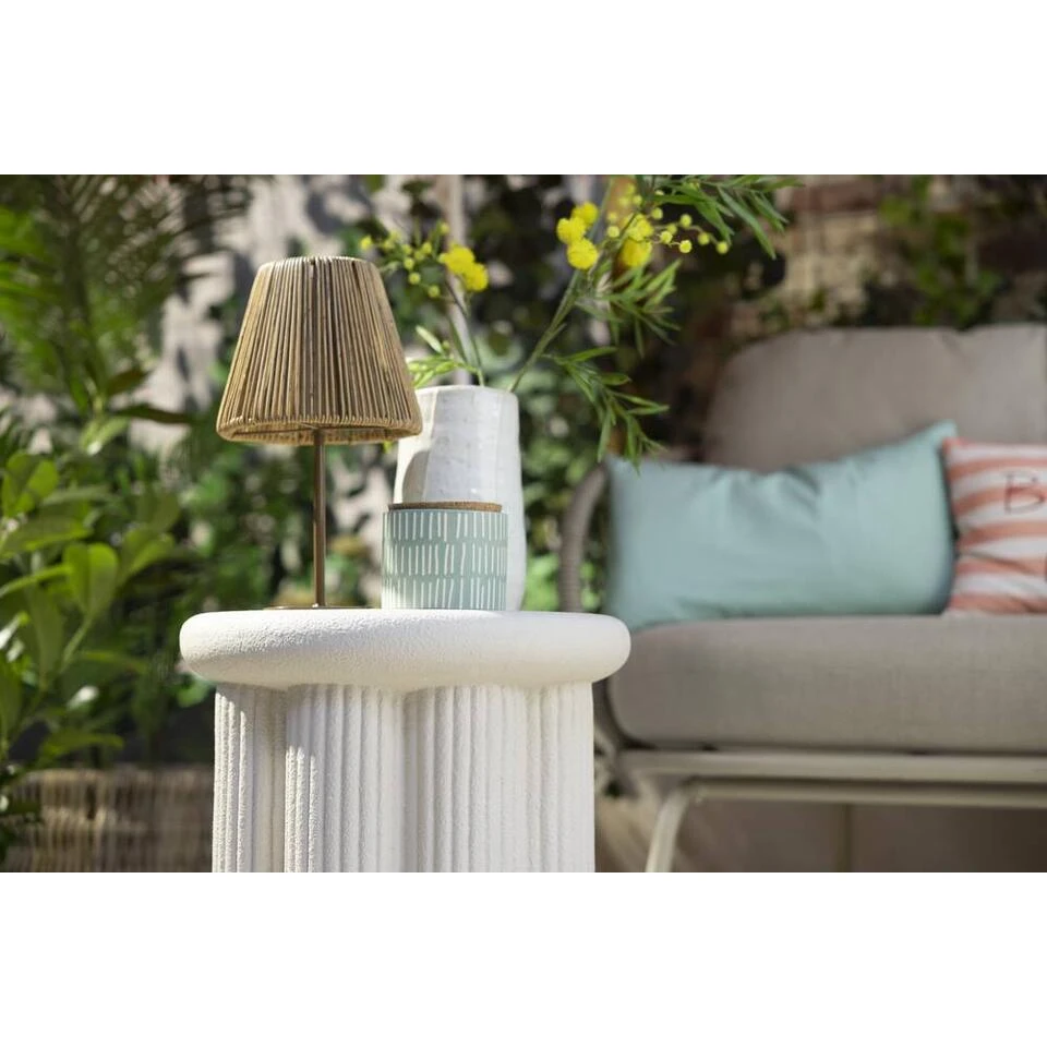 Bijzettafel Parga is een speelse, zandkleurige tafel die perfect past in elke tuin. Met zijn opvallende design en onderstel is het een plaatje om naar te kijken. Door de kleur is bijzettafel Parga gemakkelijk te combineren met andere tuinmeubels. Tuinbijzettafel Parga heeft een afmeting van 45xØ40 cm en is een echte must-have voor in de tuin!