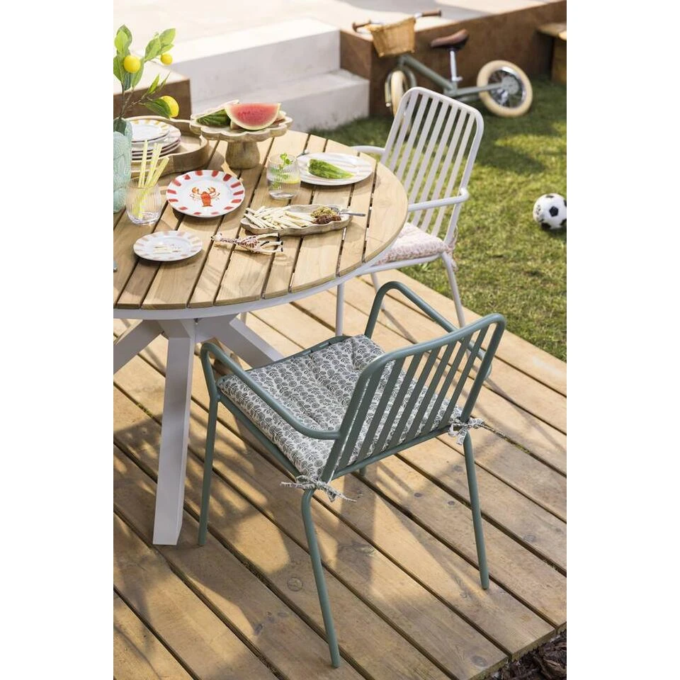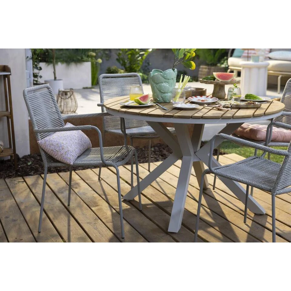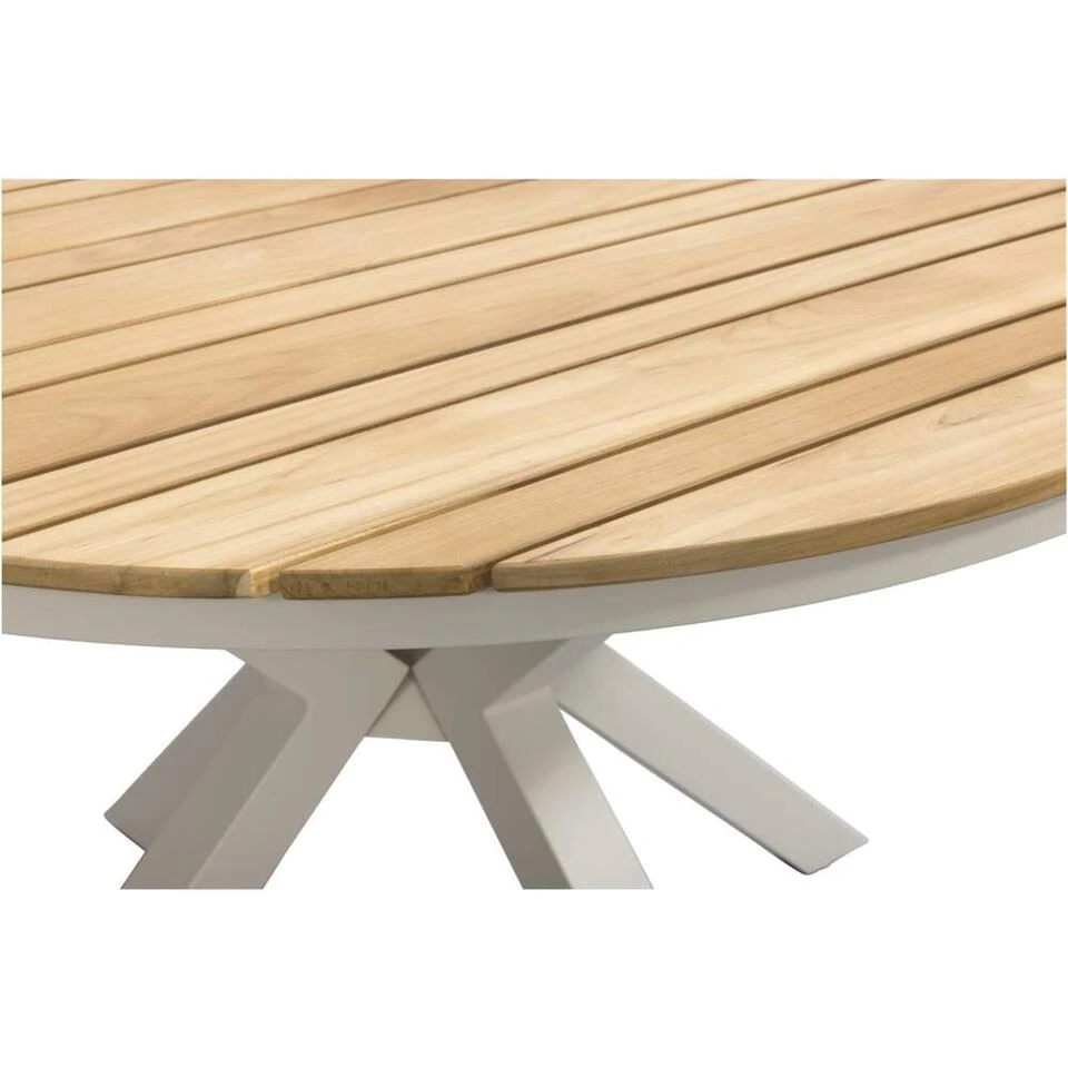 Tuintafel Perpignan is een ronde zandkleurige buitentafel gemaakt van teakhout en aluminium. De tuintafel heeft een afmeting van 76xØ120 cm en biedt plaats voor 4 personen. Combineer met een van onze tuinstoelen en geniet van de heerlijke lange zomeravonden in jouw tuin.