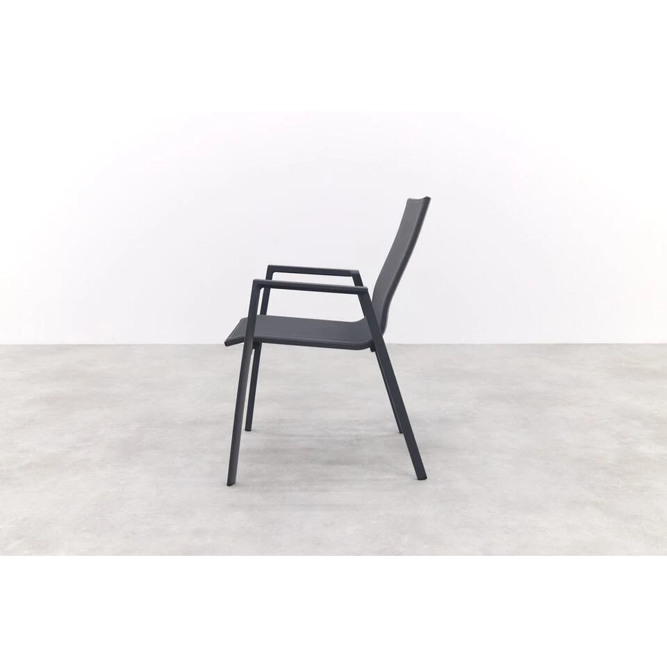 Het frame is gemaakt van aluminium en dus licht in gewicht waardoor de stoel gemakkelijk te verplaatsen is. Voor extra bescherming is het frame afgewerkt met een antracietkleurige poedercoating. De zit en rugleuning van de Atmos stapelstoel zijn gemaakt van textileen. Dit is een geweven nylon draad dat comfortabel aanvoelt. Dus ook zonder kussen heeft de Atmos stapelbare tuinstoel een comfortabele zit