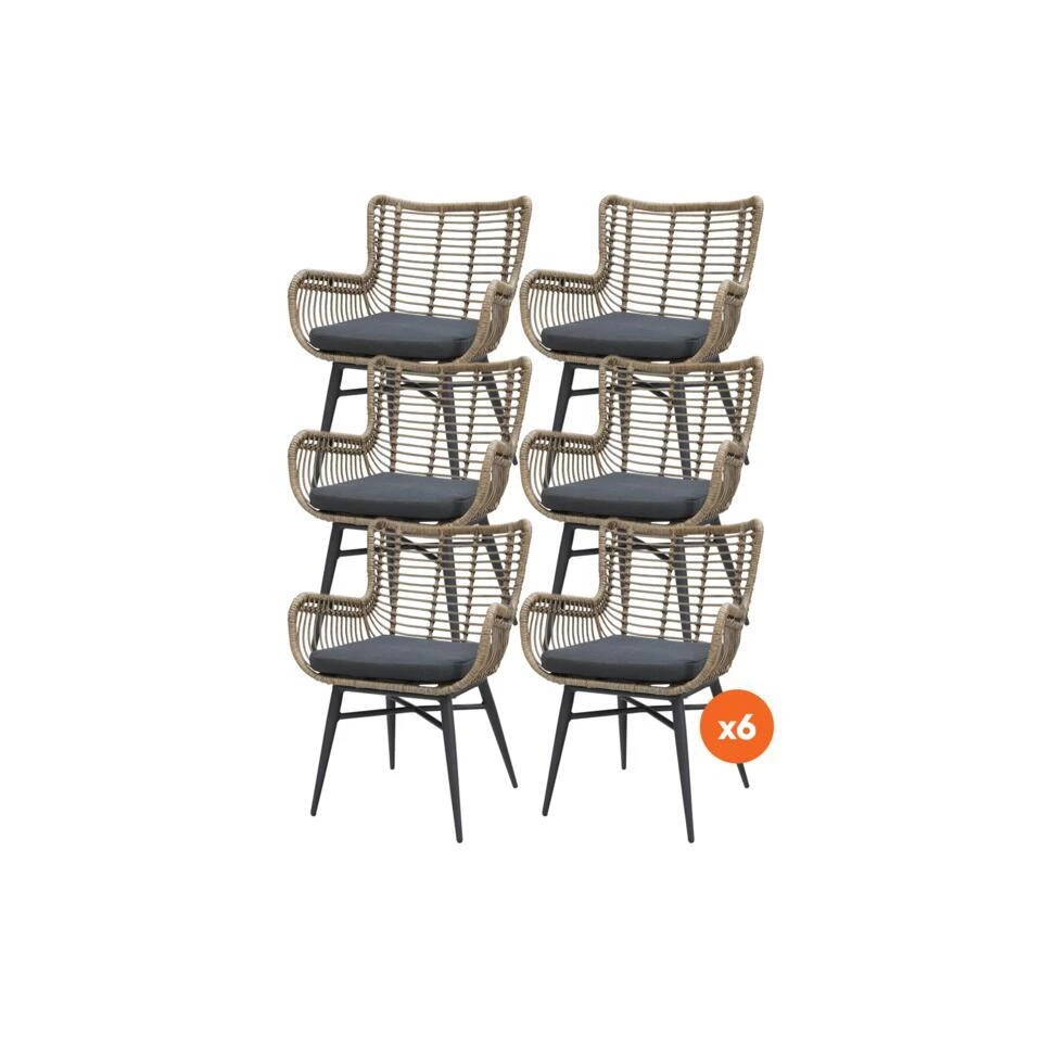 Dit is 6x de Jasmine dining tuinstoel van ons eigen merk! De Jasmine dining tuinstoel is een aanwinst voor ieder terras of balkon. De vlinderstoel heeft een retro stijl. Het voordeel van de stoel is dat deze lekker licht van gewicht is. Dit zorgt ervoor dat je de wicker tuinstoel gemakkelijk kunt verplaatsen. De stoel laat zich goed combineren met verschillende tuintafels.