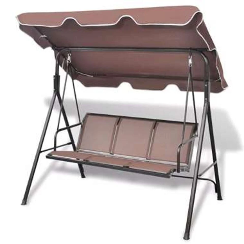 De zitting en rugleuning zijn gemaakt van weerbestendig en waterdicht textileen, waardoor de schommelbank gemakkelijk schoon te maken is. Deze schommelbank biedt plaats aan drie personen en biedt schaduw met zijn grote luifel. Je geniet van het in de zomerbries schommelen op de stoel. Onze schommelbank is de perfecte keuze voor je buitenruimte.