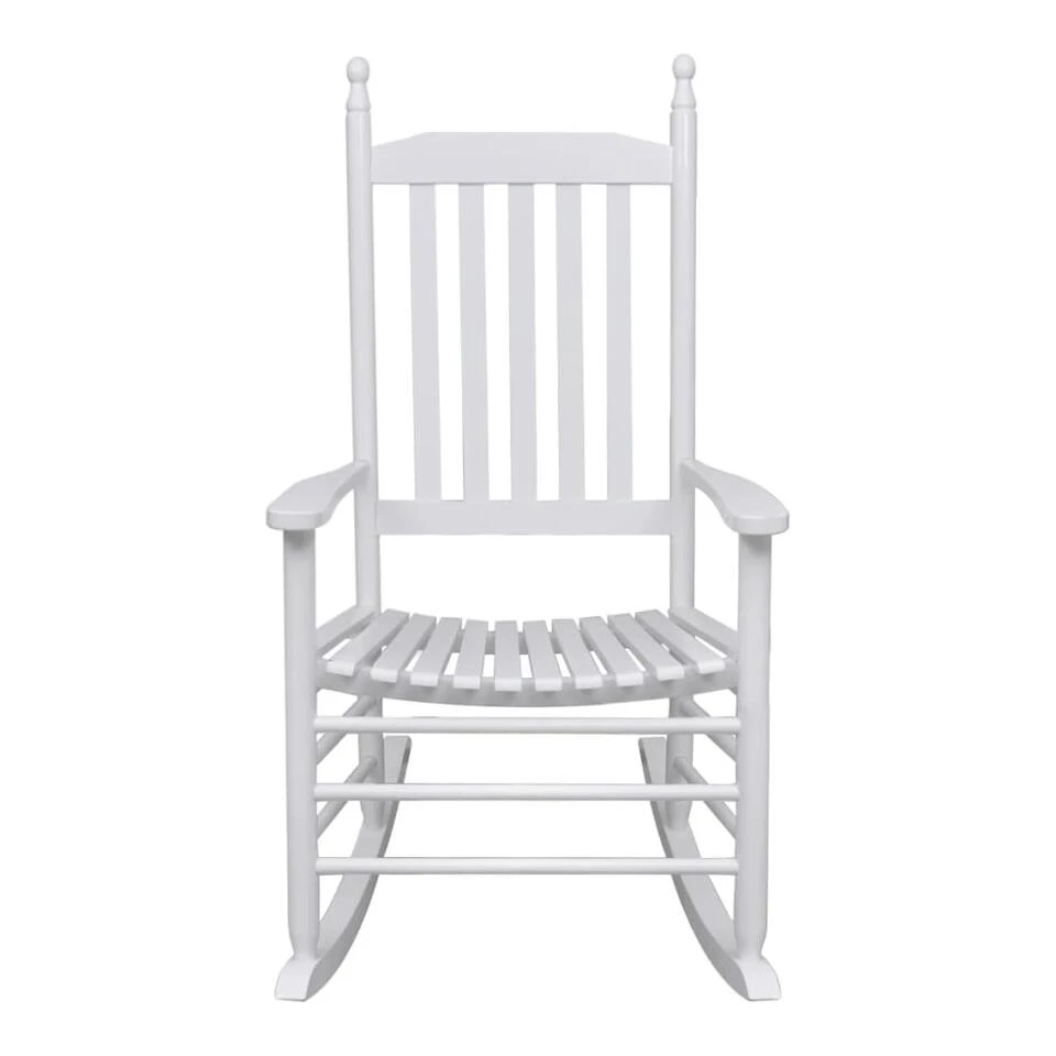 Ontspan in onze vintage-geïnspireerde massief houten schommelstoel. Hij heeft een elegant en tijdloos ontwerp en is een praktische en klassieke toevoeging aan elk interieur.
