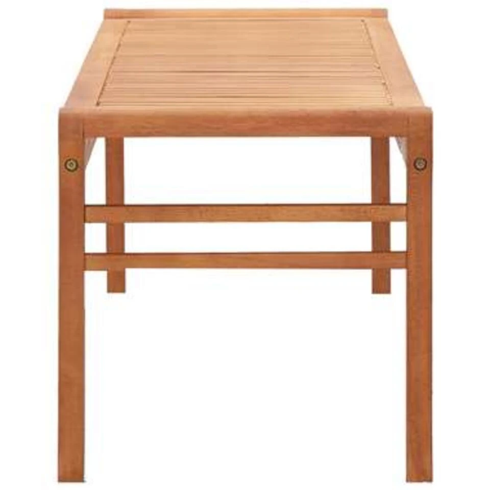 Deze bank, gemaakt van massief eucalyptushout, wordt gewaterd, in de oven gedroogd en vervolgens fijn geschuurd om het hout een glad uiterlijk te geven. Deze houten bank is bestand tegen weer en uv-straling, waardoor hij duurzaam is en perfect in elke buitenruimte past.