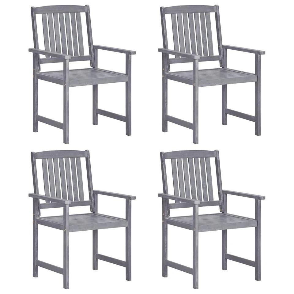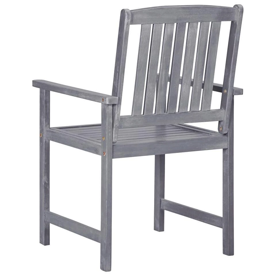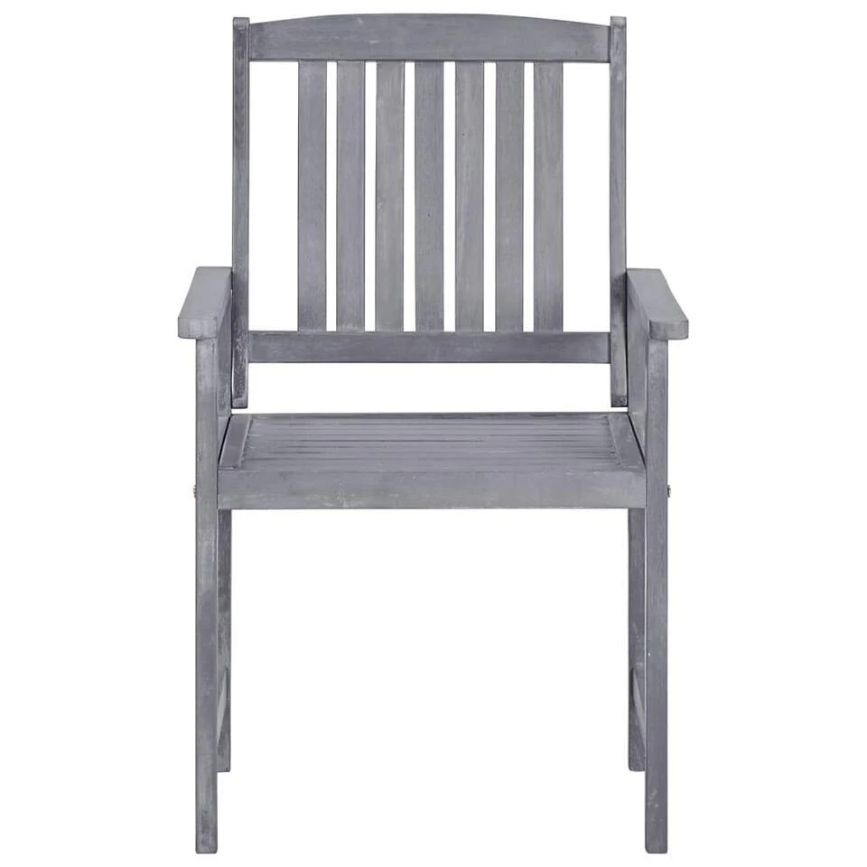 Deze tuinstoelenset is gemaakt van massief acaciahout met een greywash afwerking. Massief acaciahout is een hardhout met dichte nerven dat de kracht heeft om veel gewicht te dragen en goed bestand is tegen slijtage. Deze houten stoelenset is stabiel, duurzaam en weerbestendig. De houten poten dragen bij aan de stabiliteit. Het oppervlak van de stoelen is gemakkelijk schoon te maken met een vochtige doek.