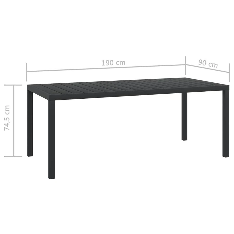 - Afmetingen tafel: 185 x 90 x 74 cm (L x B x H)