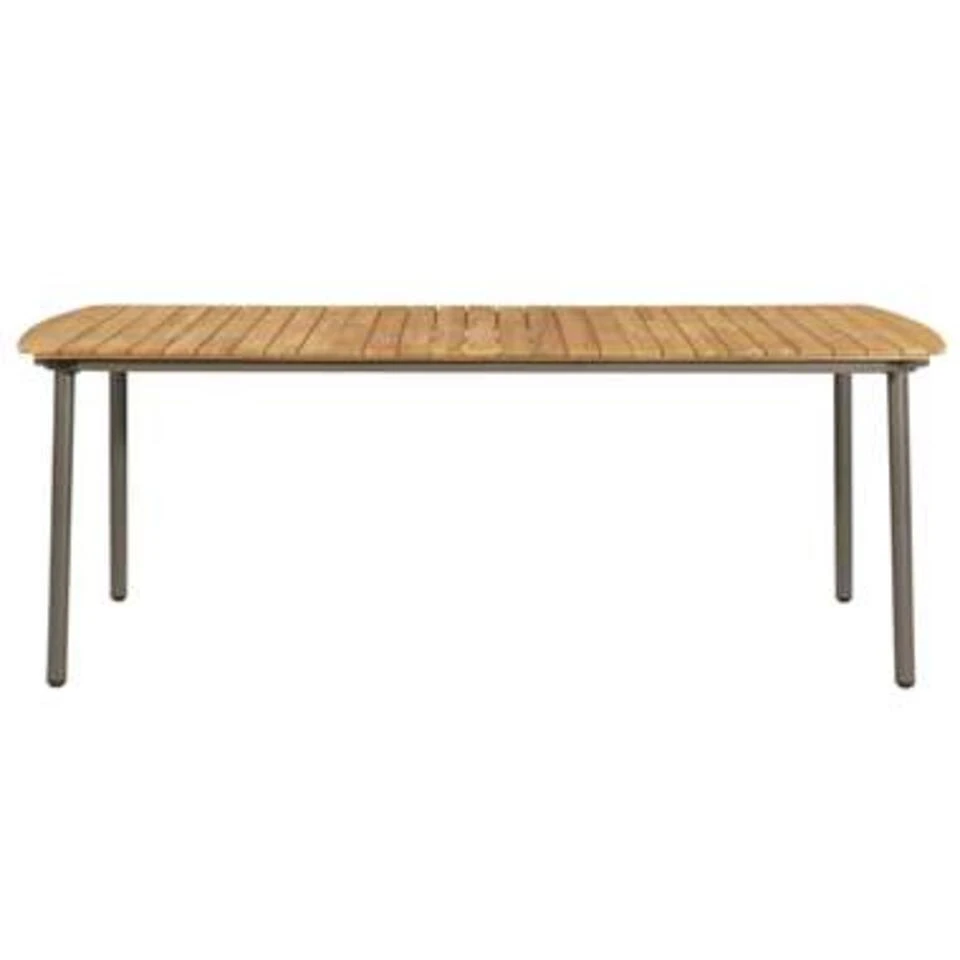 - Materiaal: massief acaciahout (met een olieafwerking) en gepoedercoat staal