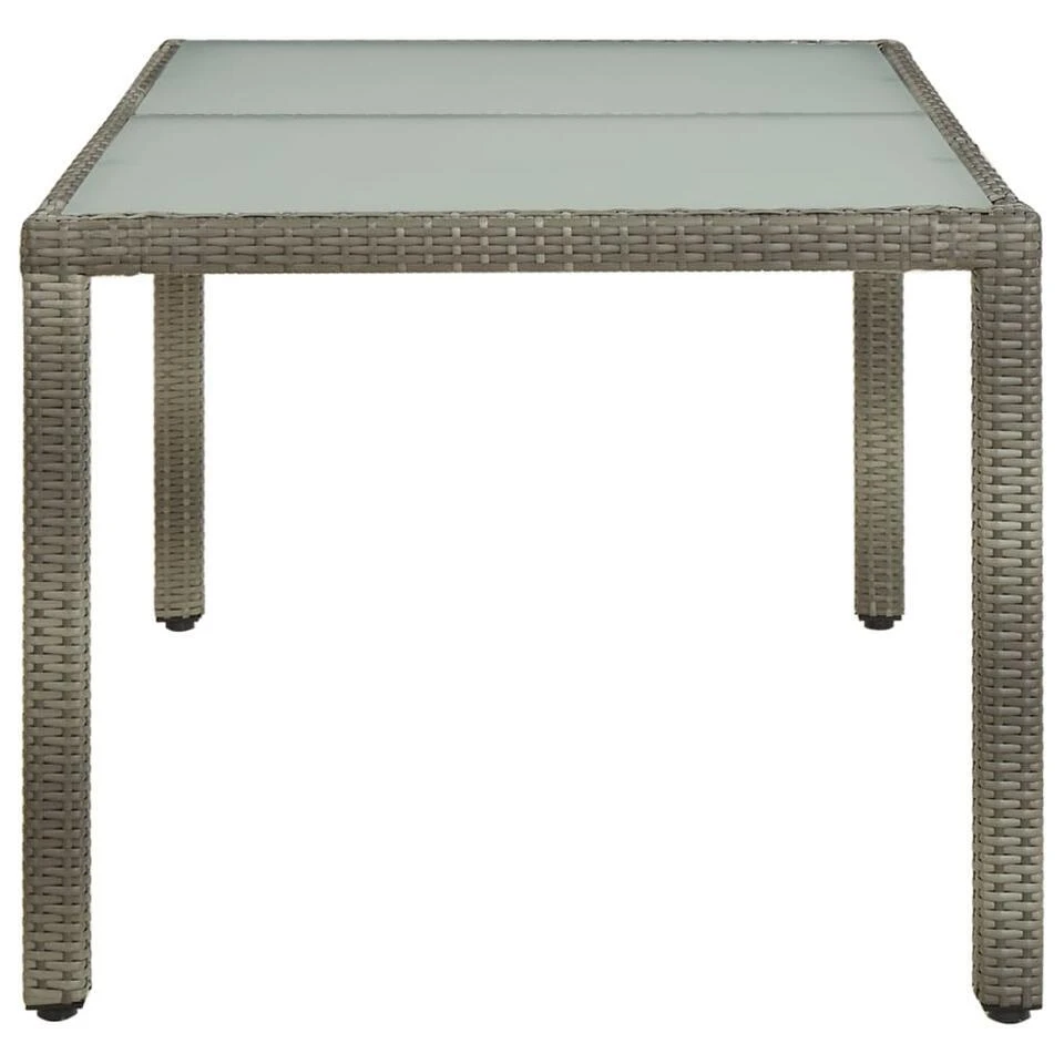 De tuintafel heeft een gepoedercoat stalen frame en is omwikkeld met poly rattan, waardoor hij stevig en stabiel is. Daarnaast is het tafelblad gemaakt van gehard glas, waardoor het eenvoudig schoon te maken is. Dankzij de lichtgewicht constructie is de buitentafel gemakkelijk te verplaatsen.