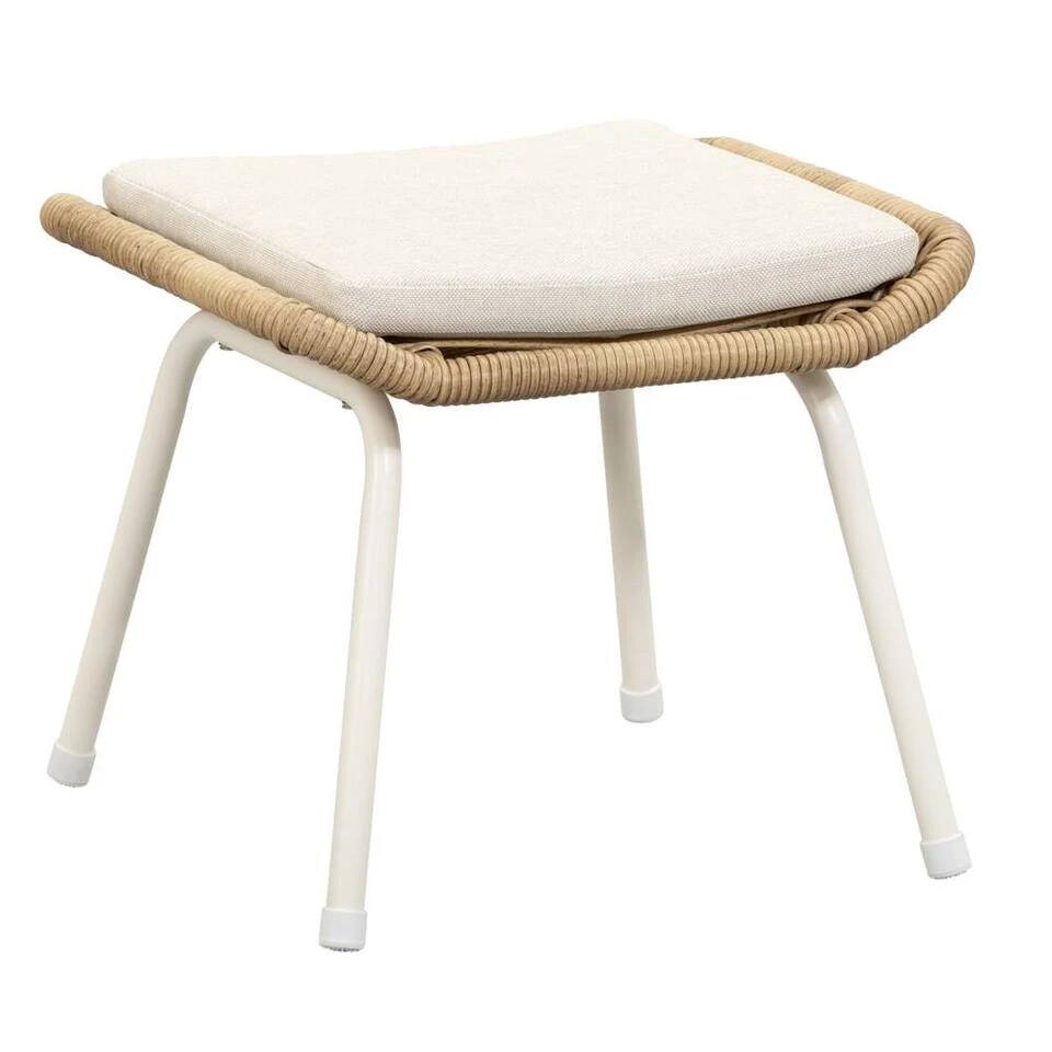 De voetenbank Grand bestaat uit een metalen frame, afgewerkt met natuurkleurig wicker. Zowel het inbegrepen kussen, als het wicker is crème/naturel van kleur. Dit geeft het meubel een moderne uitstraling. Omdat de hocker bij de lijn Grand hoort, kun je hem goed combineren met andere artikelen binnen dezelfde lijn. Zo heb je je tuininrichting direct compleet!