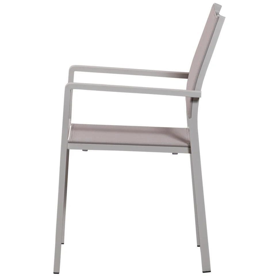 De comfortabele Fowl eetstoel van het Nederlandse merk WOOOD is een mooi zitje voor in jouw outdoor eethoek. De Fowl stoel heeft een lichtgekleurd, aluminium frame wat een tijdloze uitstraling geeft. De armleuningen zorgen voor een hoog zitcomfort.